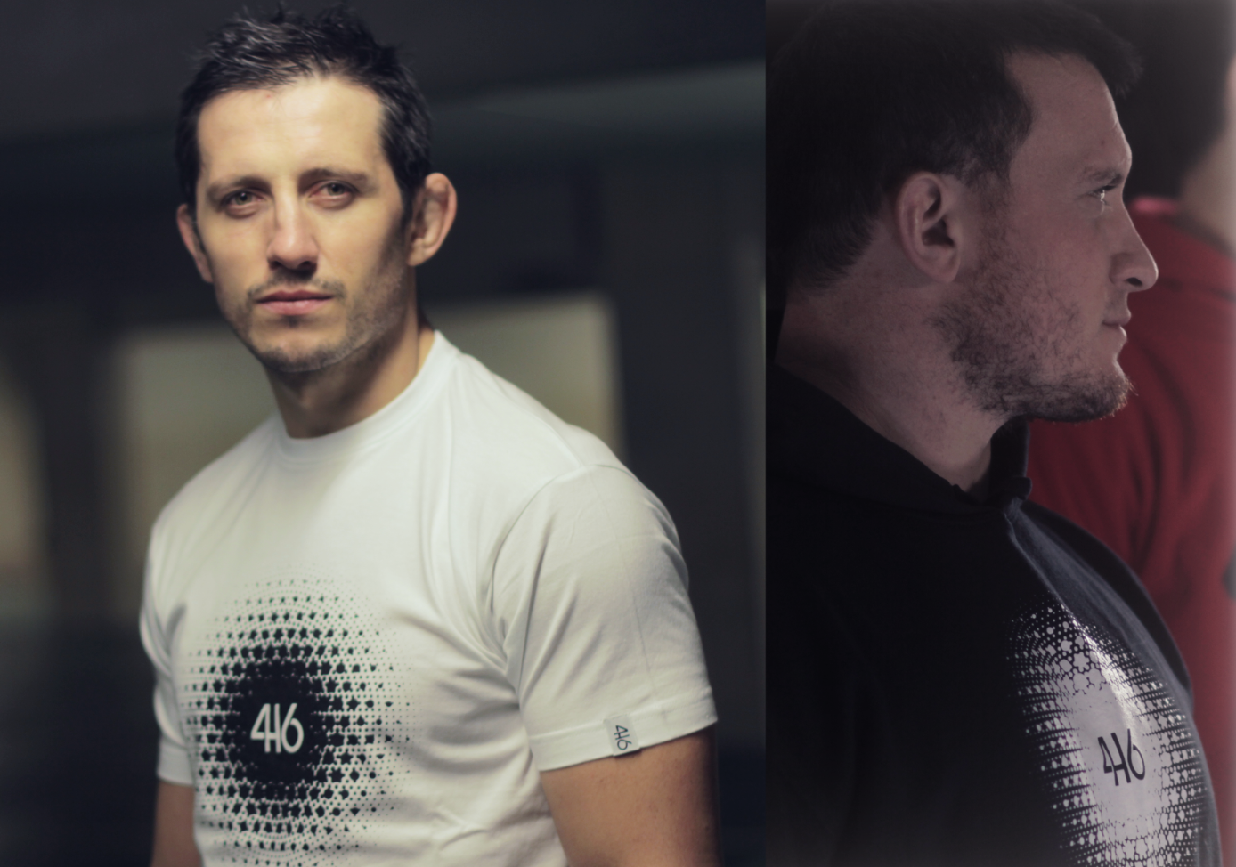 Fichier TIFF HD - 300 dpi - Thomas Domingo porte le modèle 416 Shatter rouge et Fabien Domingo le modèle 416 College