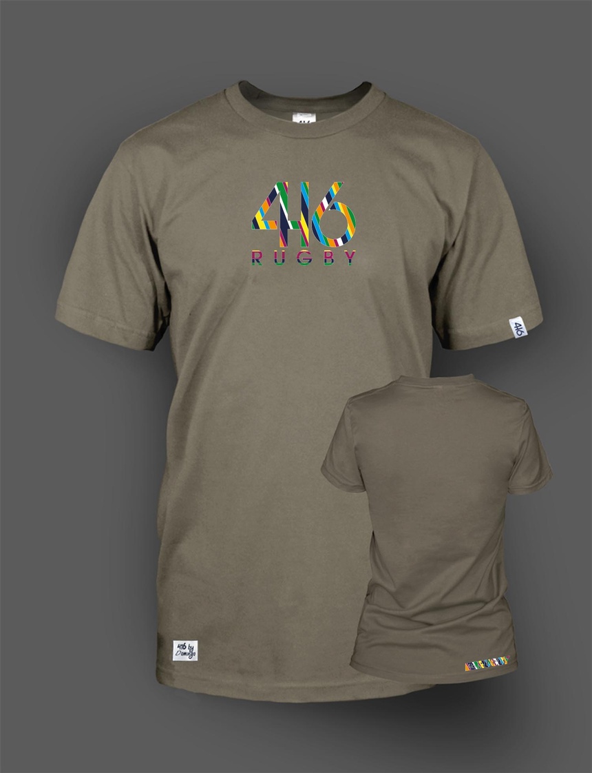100% coton semi-peigné, col rond, qualité jersey 190, bande de propreté au col, couleur du t-shirt : kaki. Imprimé : motif centré, Logo 416 au dos