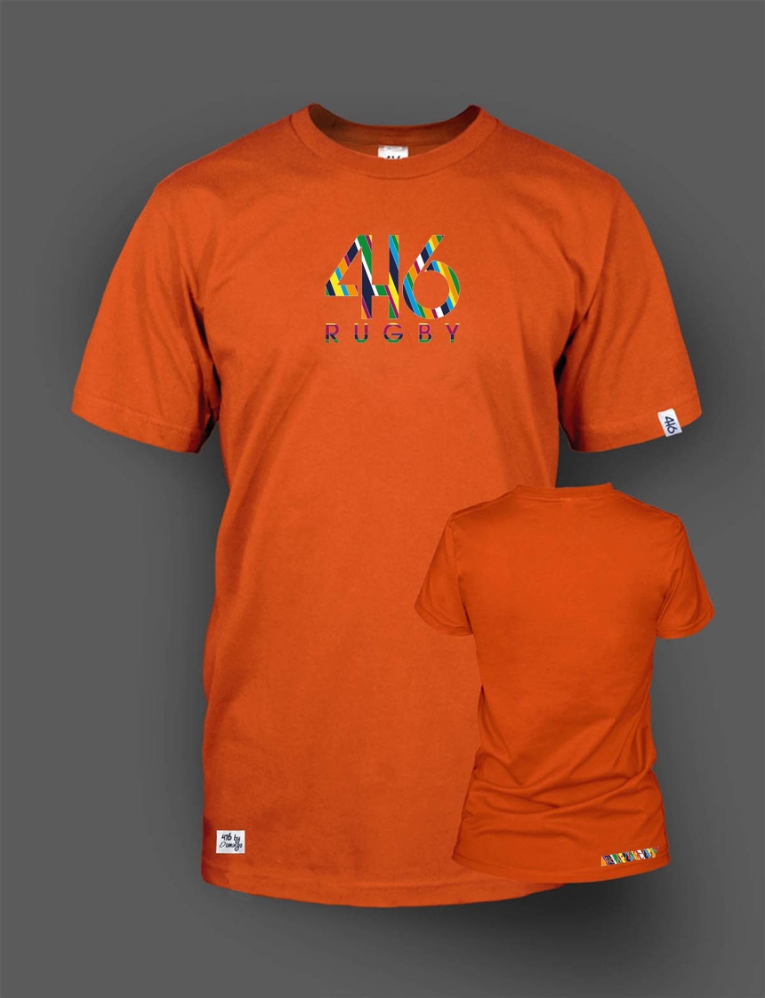 100% coton semi-peigné, col rond, qualité jersey 190, bande de propreté au col, couleur du t-shirt : orange. Imprimé : motif centré, Logo 416 au dos