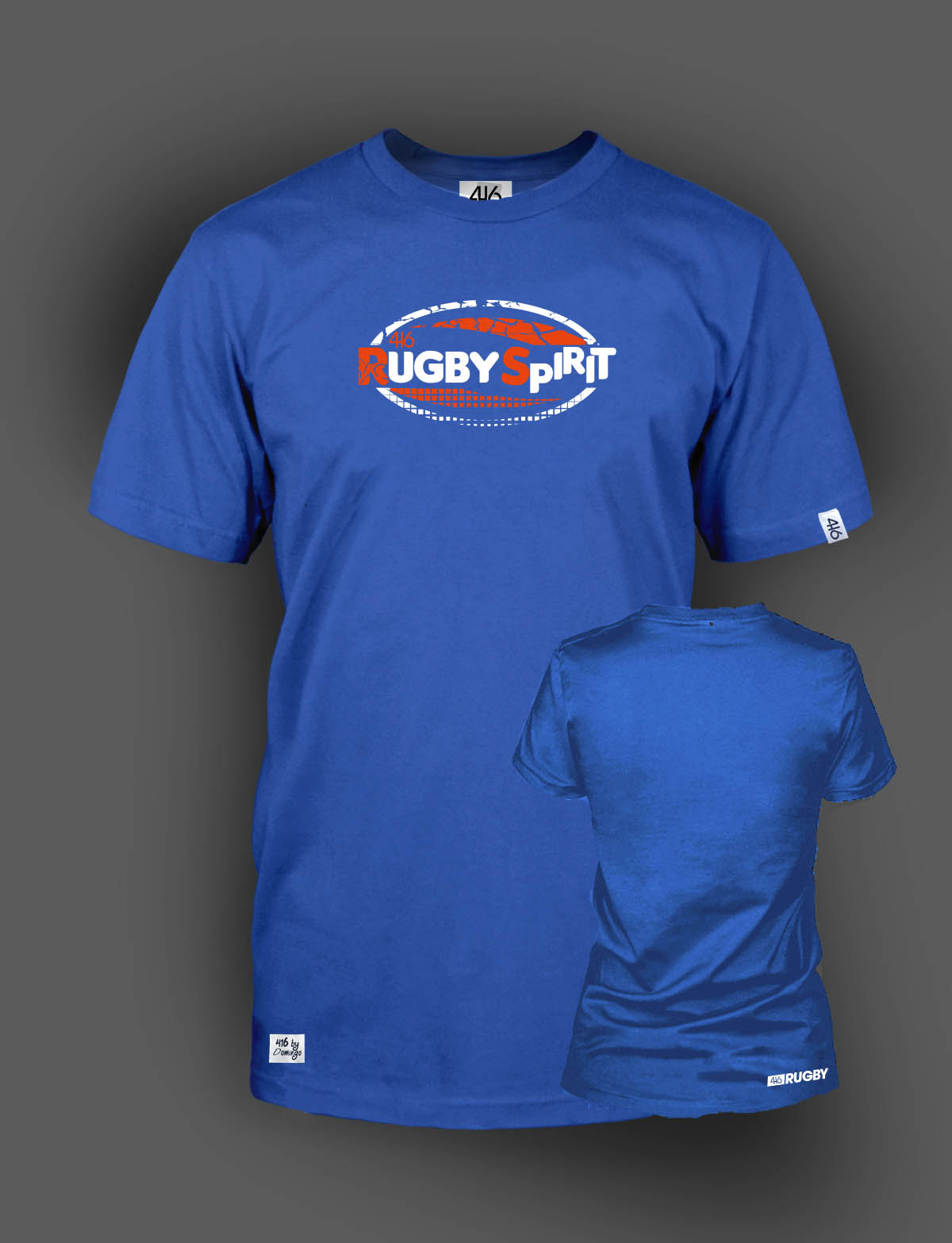 100% coton semi-peigné, col rond, qualité jersey 190, bande de propreté au col, couleur du t-shirt : bleu royal. Imprimé : motif centré, Logo 416 au dos